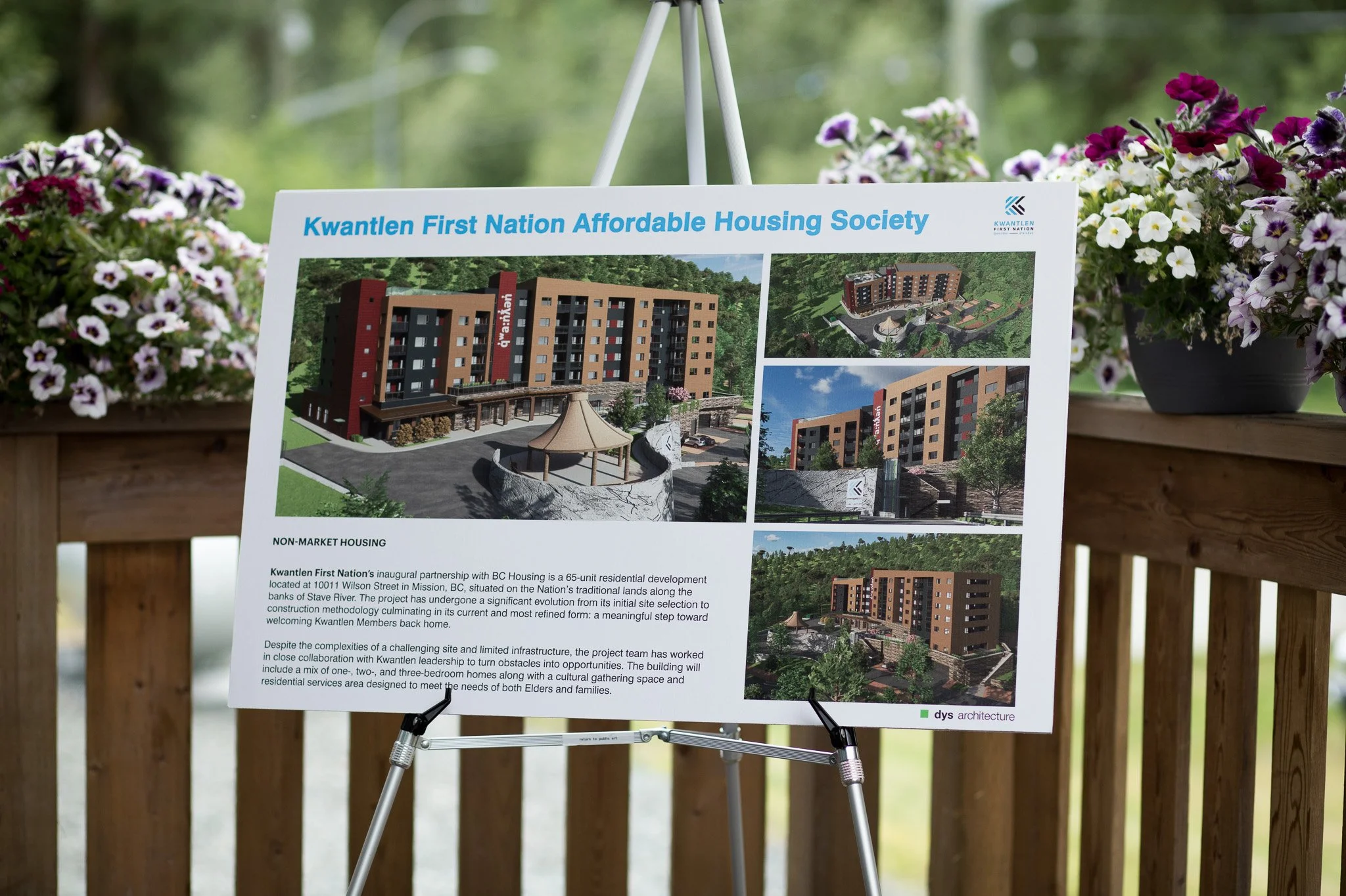 Kwantlen First Nation's inaugural partnership with BC Housing is a 65-unit residential development located at 10011 Wilson Street in Mission, BC, situated on the Nation's traditional lands along the banks of Stave River. The project has undergone a significant evolution from its initial site selection to construction methodology culminating in its current and most refined form: a meaningful step toward welcoming Kwantlen Members back home.